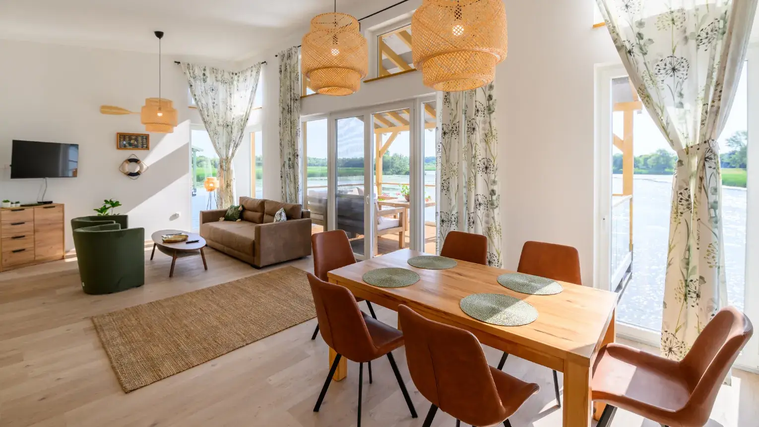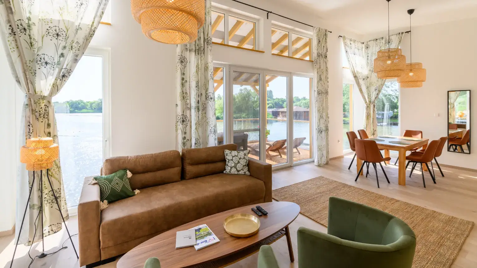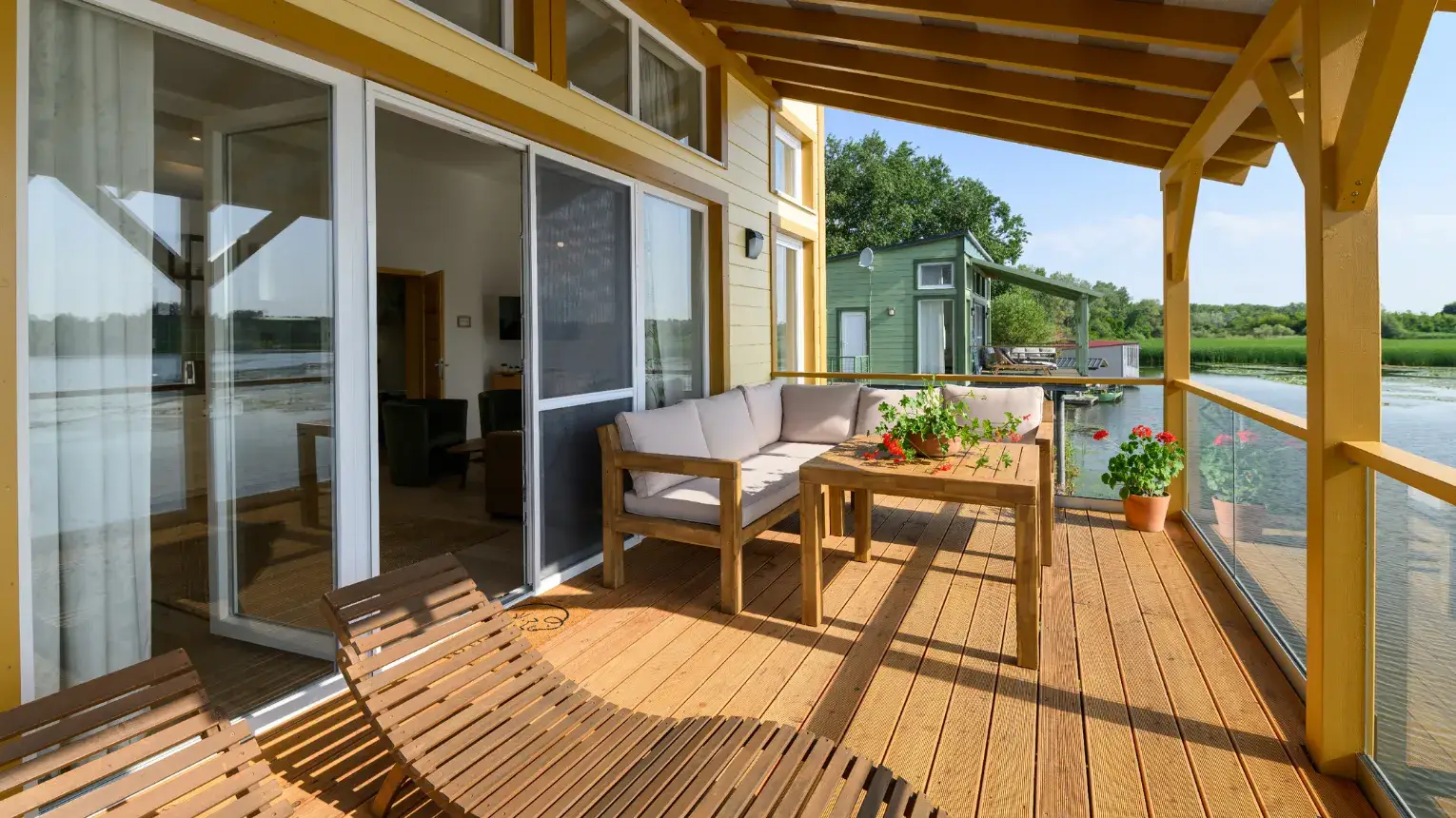 Hűvösebb napokon sem kell nélkülöznie a csodás kilátást, hiszen az otthonos, meleg nappali hatalmas üvegfalain keresztül csodálhatja a természet megannyi szépségét, míg a nyári reggeleken mi lehet annál kellemesebb, mint a víz fölötti teraszon elfogyasztani egy isteni reggelit!