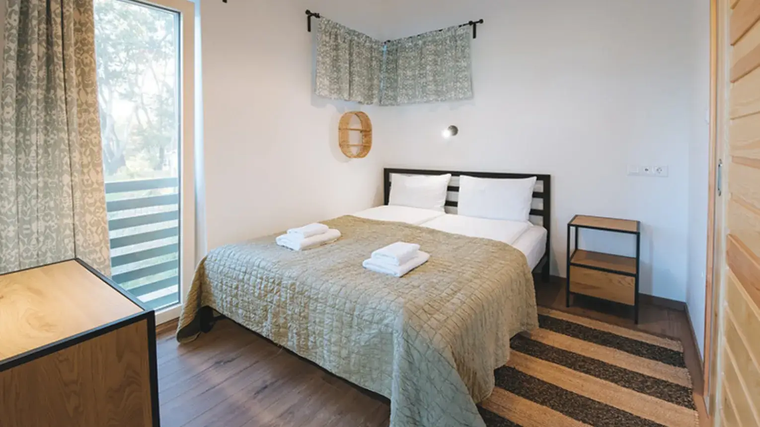 A ház 4 személy részére kínál kényelmes pihenési lehetőséget, melyhez kettő, saját fürdőszobával rendelkező hálószoba, valamint jól felszerelt konyha, egylégterű étkező és nappali áll vendégeink rendelkezésére.