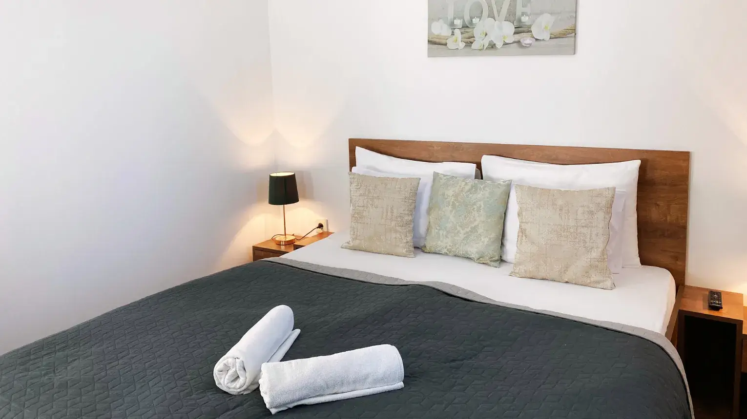 - Az apartman emeleten helyezkedik el, nappaliban 2 személyre ágyazható, kihúzható kanapé található, a hálószoba franciaágyas.