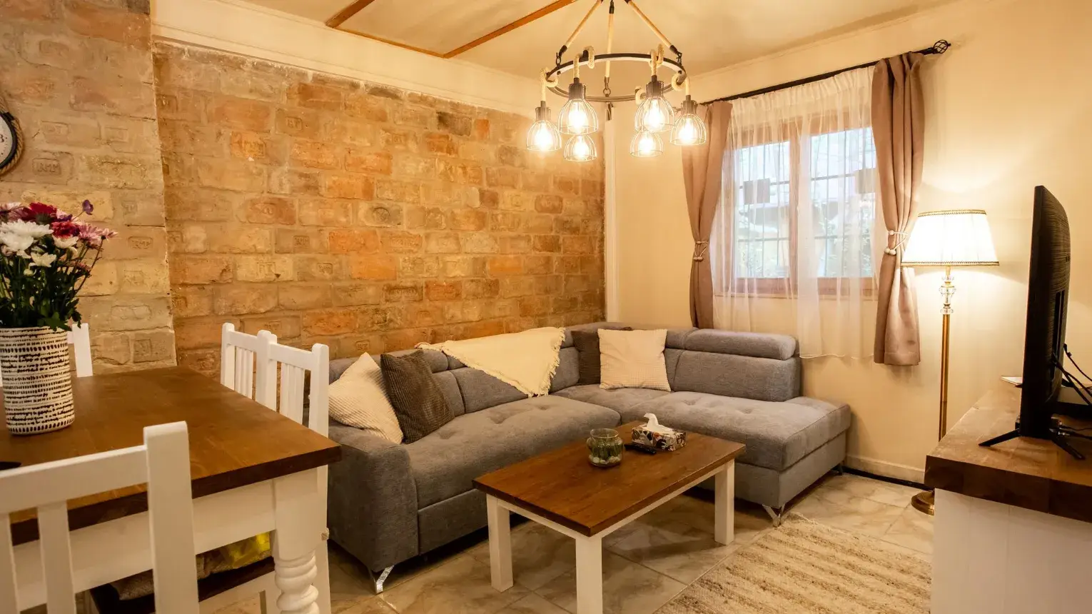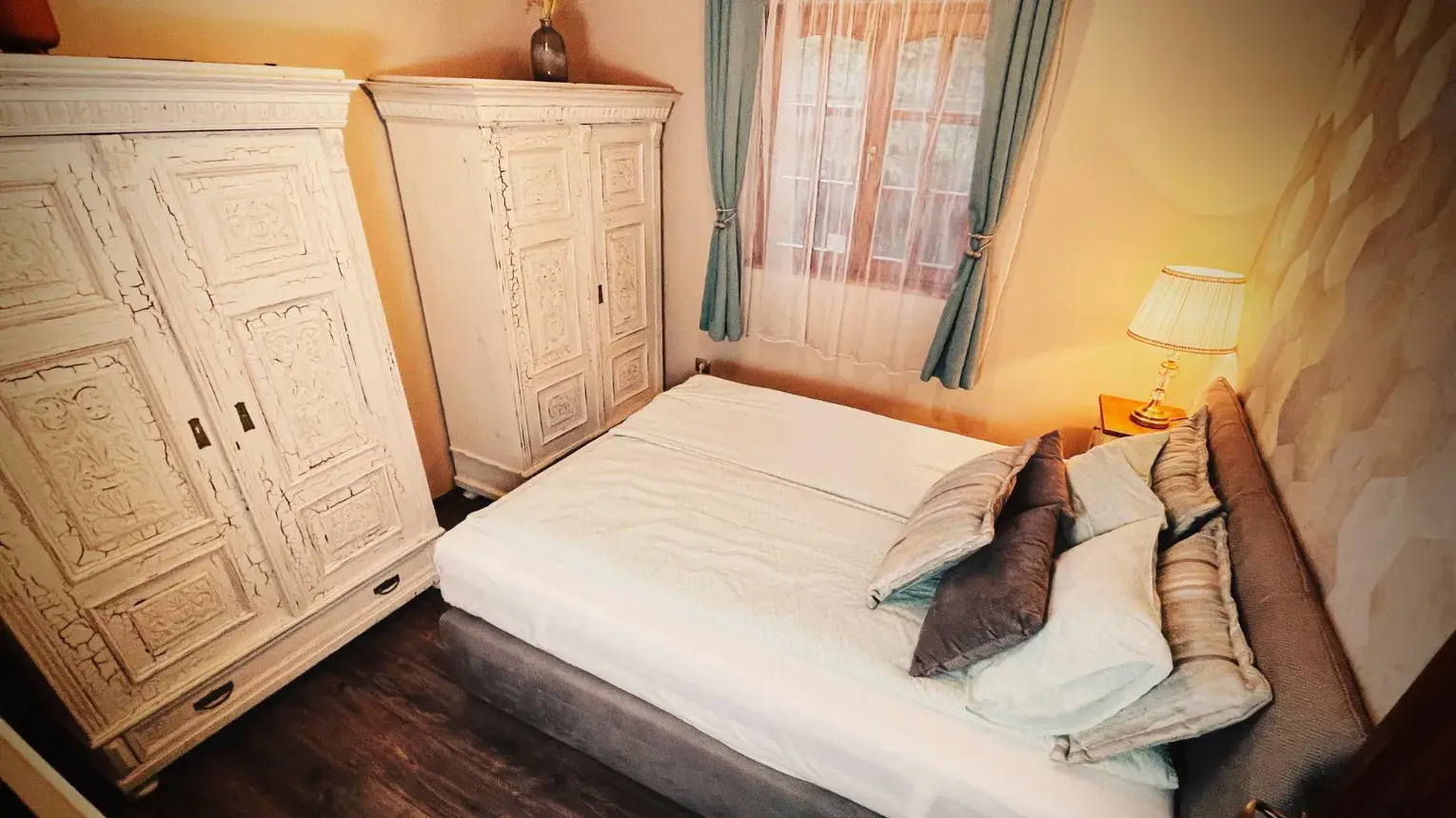 A téglaház 63 m2-es, három alvóhelyiséggel rendelkezik (nappali, hálószoba és tetőtér). Teljesen felszerelt fürdőszoba, WC, illetve konyha vár Titeket. A ház kandallóval és elektromos radiátorral fűthető, ami kellemes meleggel árasztja el az egész házat. Kérésre tudunk biztosítani kiságyat, gyermek kádat és etetőszéket is.