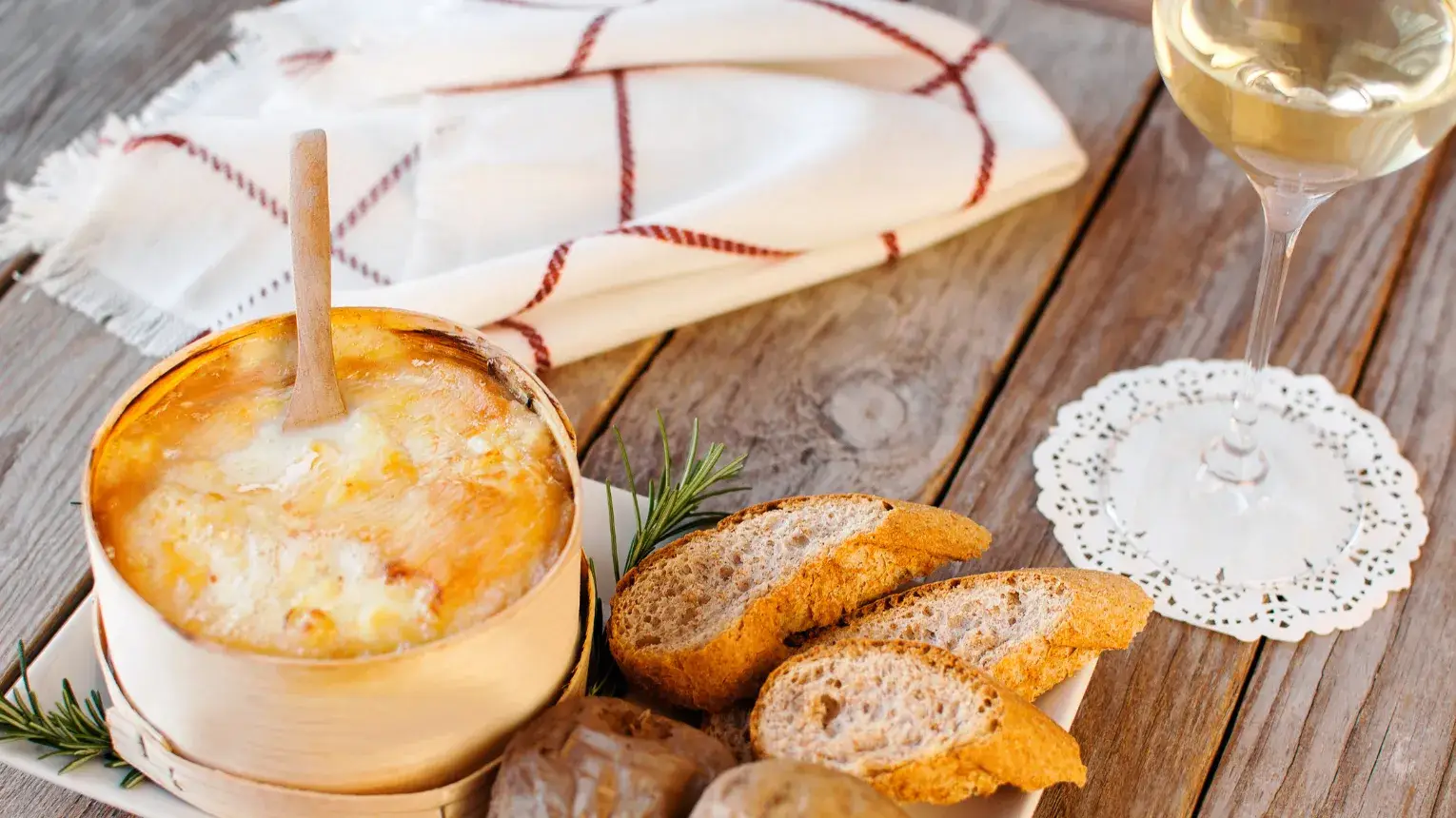 - krémesen olvadt Mont d’Or fondue, frissen tálalva