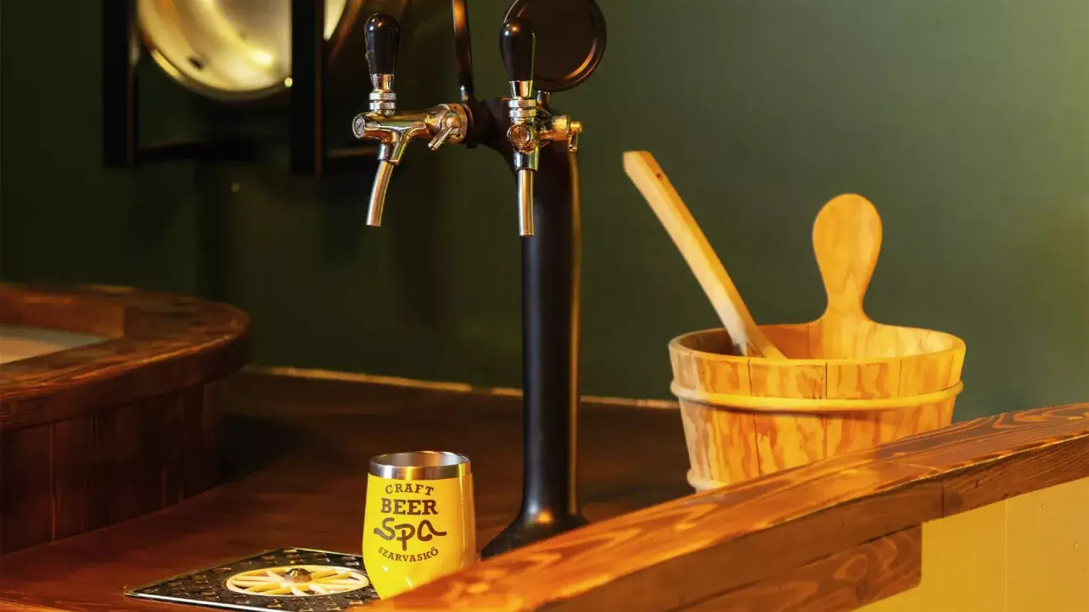 A hidroterápiás dézsák mellett 2-2 sörcsap áll rendelkezésre, hogy a dézsákból ülve is kényelmesen lehet sört csapolni. Állandó kínálatként egy 50 napig erjesztett, alacsony alkoholtartalmú (4,1%), könnyű, helles típusú szűretlen lagert kóstolhatnak a vendégek. A Helles 50 lagert, Magyarország egyik legaktívabb kisüzemi-kisérleti sörfőzdéje, a Mad Scientist főzi a résztvevők számára. A másik csapon folyamatosan változó, hazai kraft főzdék sörei vannak rotálva. Természetesen az ételallergiások sincsenek elfelejtve: folyamatosan változó gluténmentes kínálat is elérhető dobozos formában.
