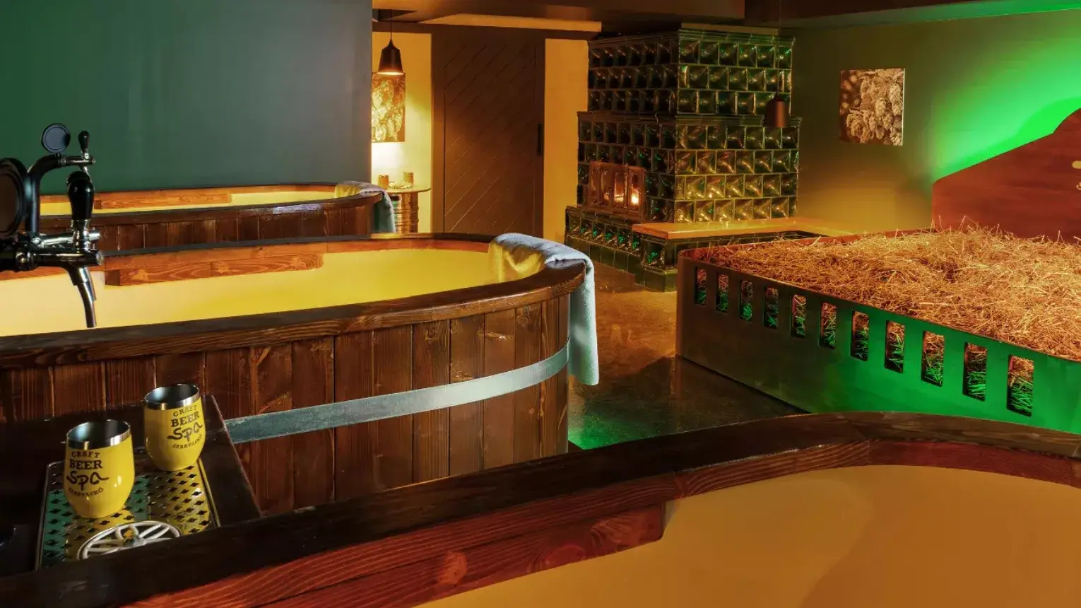 - Hidroterápiás sörfürdő: A második lépés a 40 perces sörfürdő, amely egy a sör alapanyagát alkotó különleges keverékkel készül: a 38 fokos vízhez adódik hozzá a sör természetes összetevői, szóval kerül bele komló és maláta, no meg egy nagy adag gyógynövényekkel dúsított fürdősó is. A komló illóolajok magas tartalma hozzájárul a bőr pórusainak általános vitalizálásához és ellazításához. A természetes összetevők egyedülálló kombinációjának köszönhetően, a fürdő serkenti az anyagcserét, kiüríti a szervezetből a káros anyagokat, oldja a belső és külső feszültséget, fáradtságot és stresszt és ezáltal tökéletes lelki és testi ellazuláshoz vezet. A sörfürdőben a bőrön keresztül szívódnak fel az értékes összetevők, amelyek puhítják és táplálják azt. Az élmény alatt az ajándékozottak korlátlan mennyiségben fogyaszthatnak frissen csapolt kézműves sört, hogy a testi kényeztetés mellett az ízlelőbimbóikat is kényeztessék.