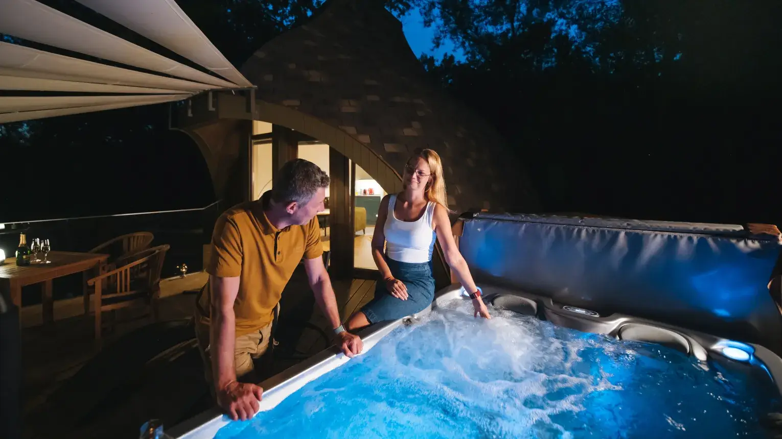 Pihenés jakuzzis lombházban a Kormorán kikötőben Tiszafüreden