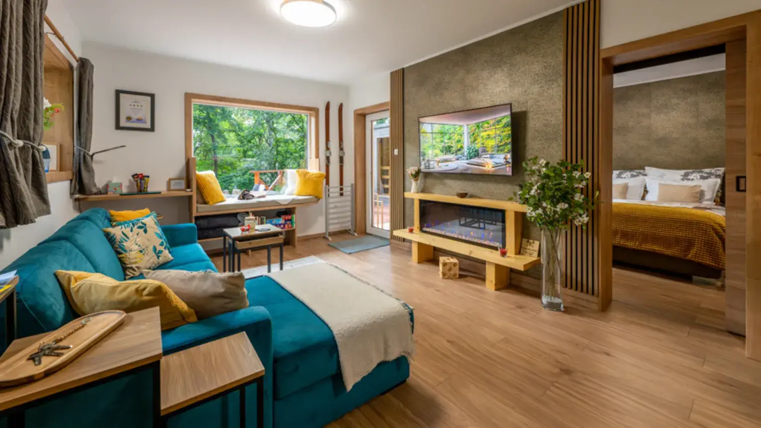 A háló panorámaablakán át is élvezhetitek a természet csodás látványát, ki sem kell kelnetek az ágyból. A meleg fények és színek összhatása biztosítja a pihentető, felejthetetlen éjszakákat.