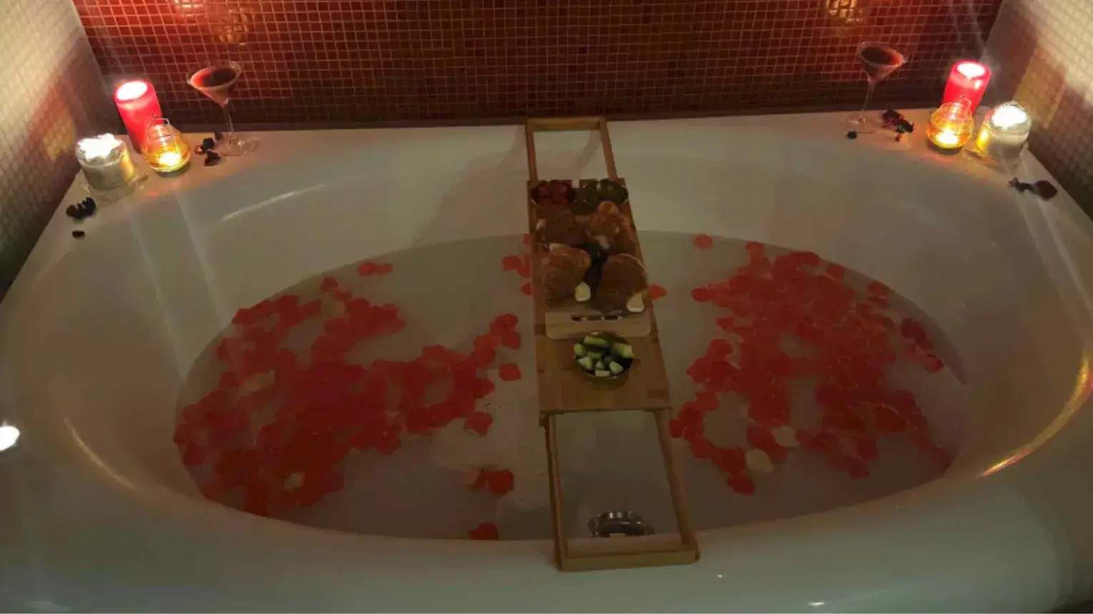 - 105 perc privát pihenés rózsavizes pezsgőfürdővel, rózsaszirmokkal, élménytállal és pezsgővel