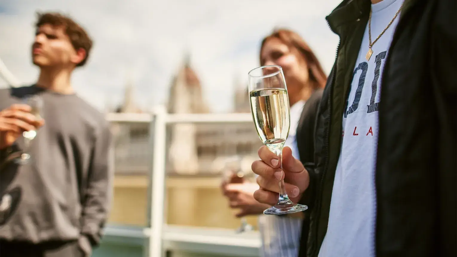 A hajóra lépés pillanatától különleges utazás veszi kezdetét: az ajándékozott párt már érkezéskor hűsítő üdvözlő ital várja. A kínálatban prosecco és üdítő is szerepel, így mindketten ízlésük szerint választhatnak. A hajóút során lehetőség nyílik további italok vásárlására a fedélzeti bárban, miközben a Duna hullámain ringatózva tárul fel előttük a város páratlan látképe.