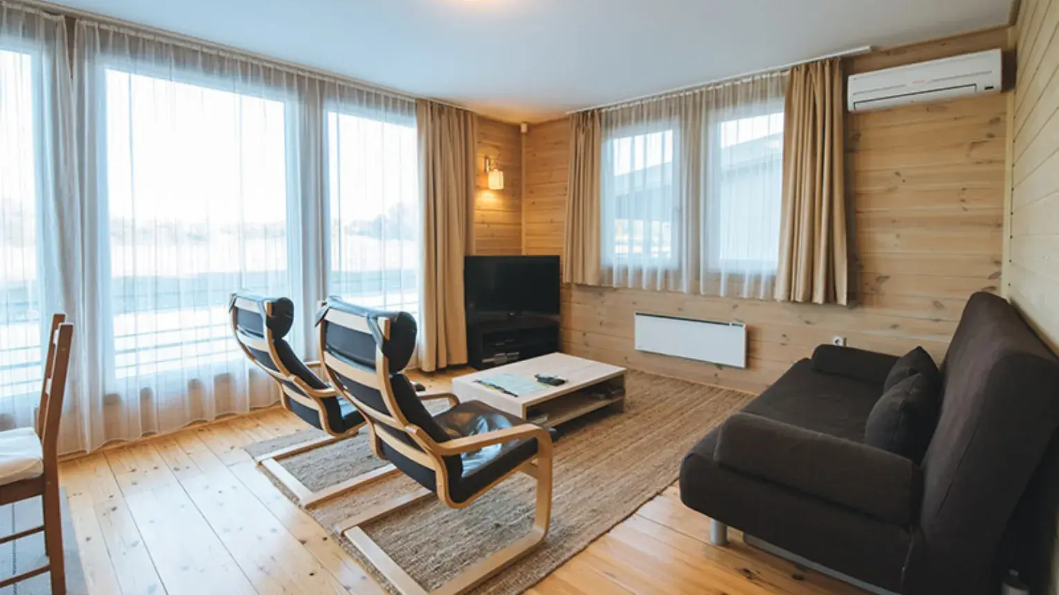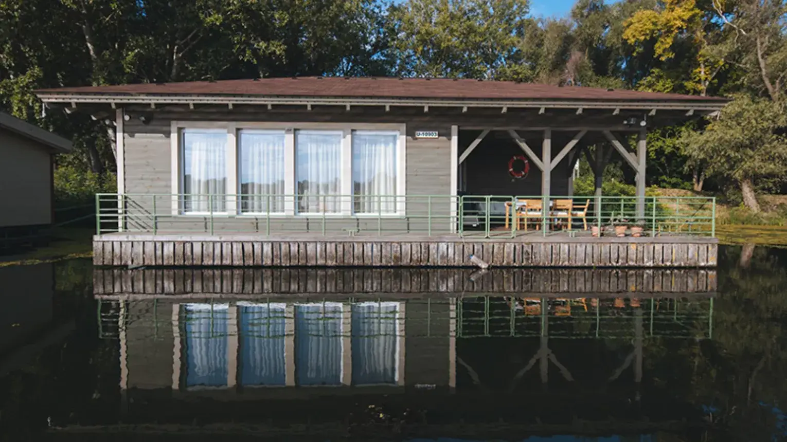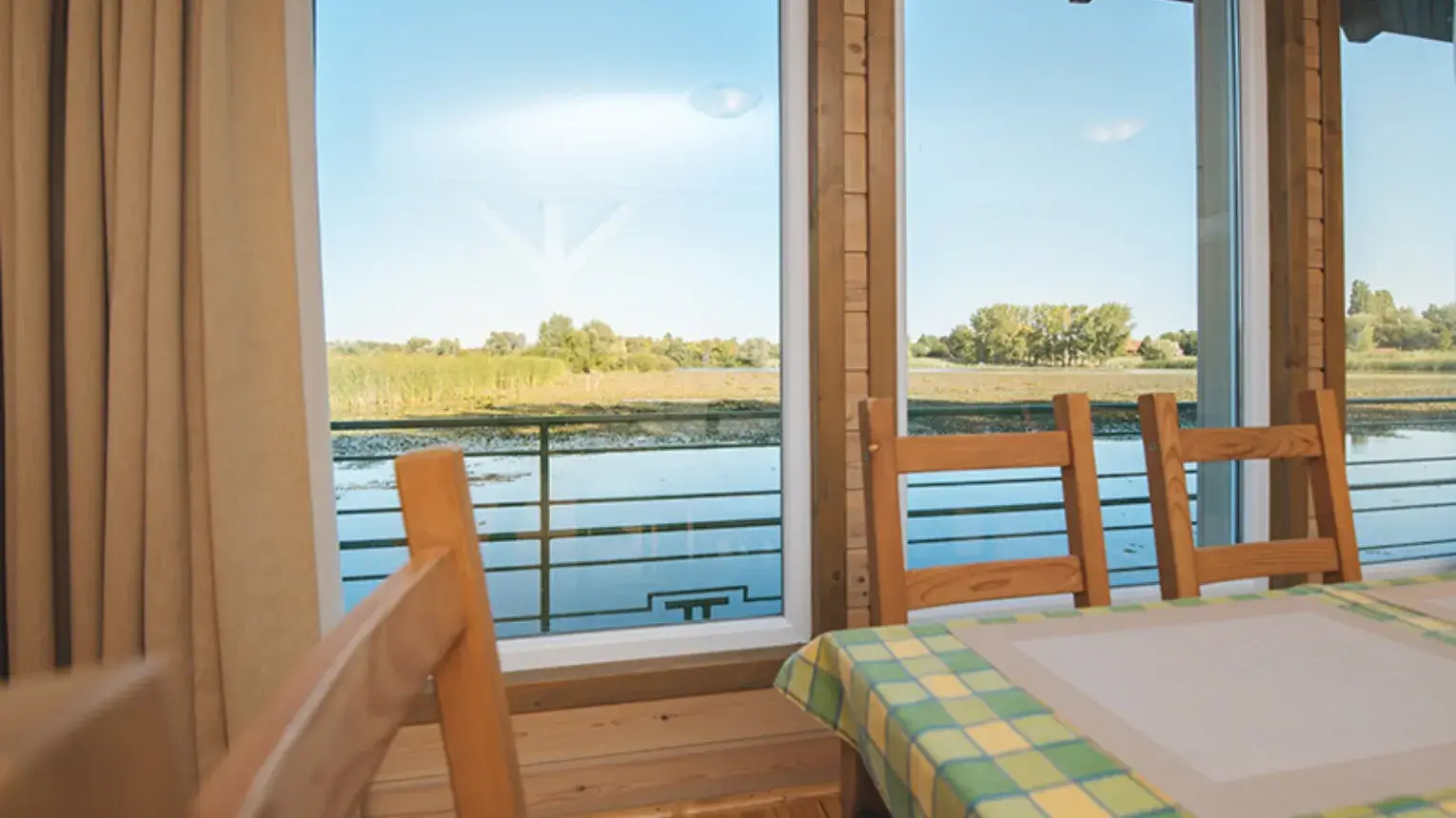 A úszóház felszereltsége: 4 főre ágyak 75 négyzetméteren, Wifi, TV, Légkondícionáló és persze a Panoráma