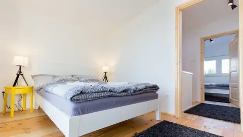 Két szinttel rendelkeznek, fent 2 szoba található, az egyik szoba francia ágyas, a másikban 2 db egyszemélyes ágy található.