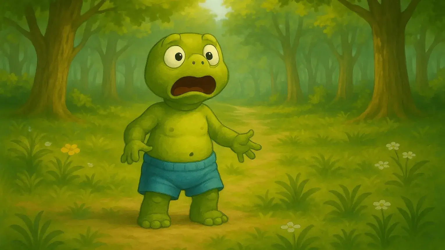 Tavasszal nyílnak az első virágok, felcsendülnek az erdei madarak párt kereső dalai, zöld színbe borulnak a fák, a bokrok, a fű… Váratlanul egy oltári nagy sikoly szeli át ezt a vidáman ébredező természetet. Teknős Ernő, a mocsári teknős, a páncélja nélkül ébredt fel a téli pihenőjéből. Teknős páncél nélkül? Mi történhetett? Ki vihette el és miért? Segíts megfejteni a rejtélyt, mert Ernőnek nem jó meztelenül. (Egy kisgatyája azért van…)