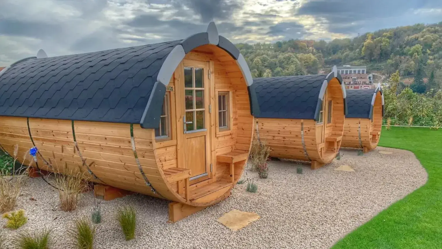 A hátsó kertben találhatók, melyben a fűtést infrapanel biztosítja.