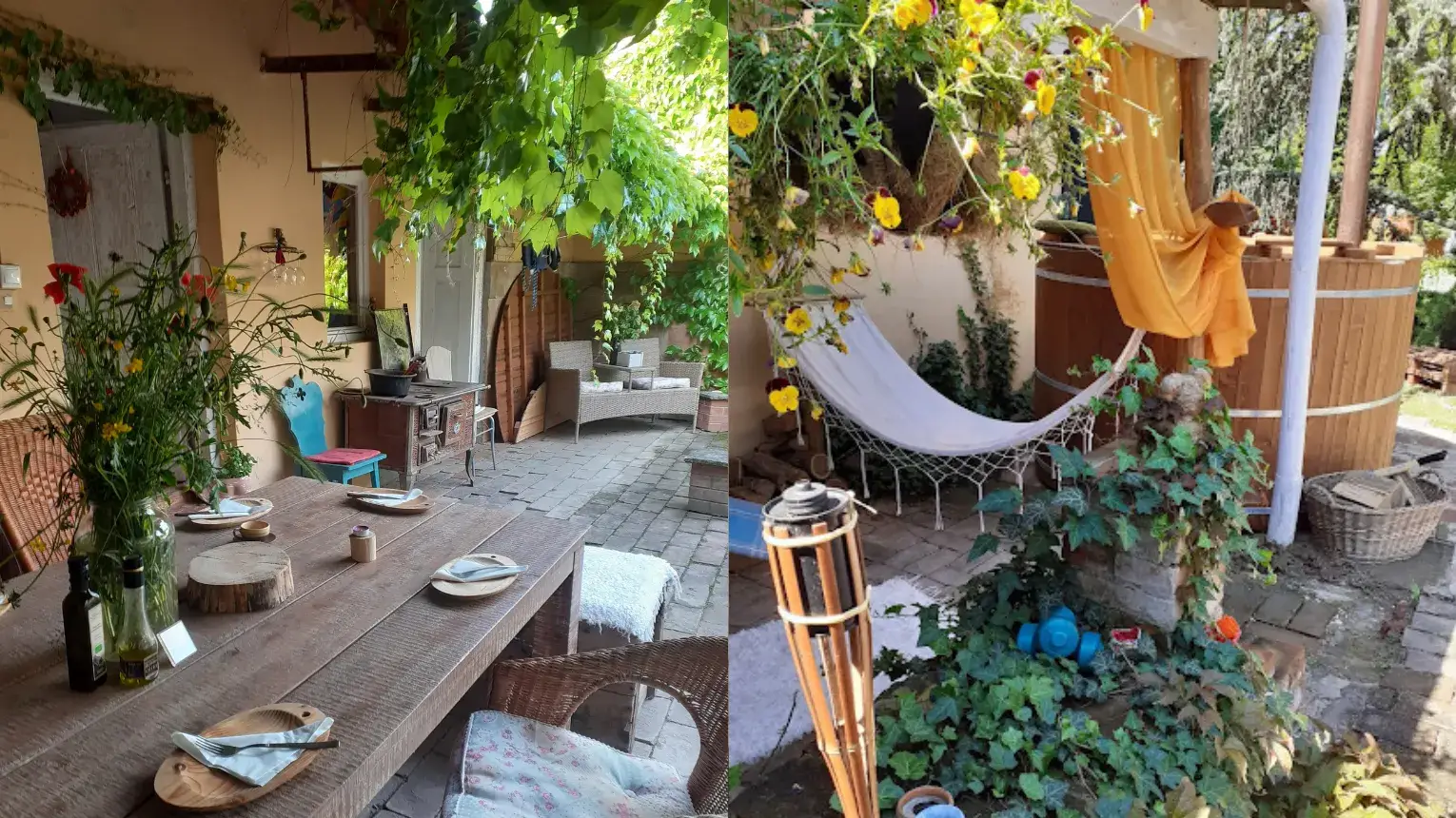 - zárt,parkosított kert, szabadtéri főzés-sütés minden szükséges kellékekkel