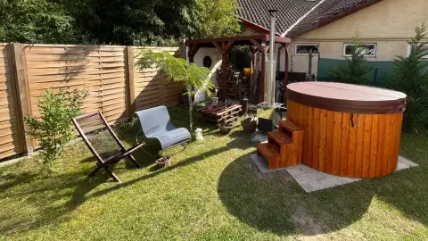 Lepd meg magatokat vagy szeretteidet egy kellemes bormámoros pihenéssel! Ha egy csipetnyi vidéki életérzést szeretnétek magadénak tudni, látogassatok el a Dunakanyar szívében, Leányfalun található vintage stílusban berendezett Gesztenyeházba. A vendégház kertjében hangulatos 6 fős üvegszálas fürdődézsa található, hogy teljesen fel tudjatok töltődni a rohanós hétköznapokból. A dézsához tűzifát és fürdőköntöst is biztosítunk. A házikót olyan vendégeknek találtuk ki, akik szeretnének elvonulni távol a város zajától, és közel a természethez szeretnének minőségi időt eltölteni.