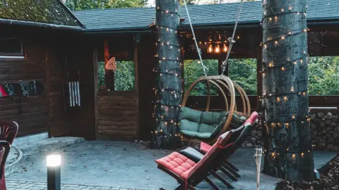 - Olvasófészkek, pihenő kanapék az erdős udvaron