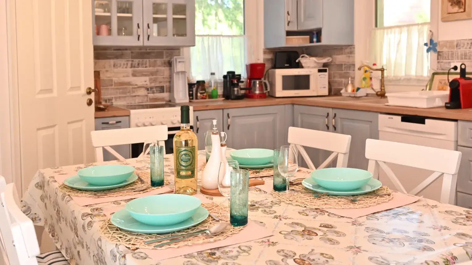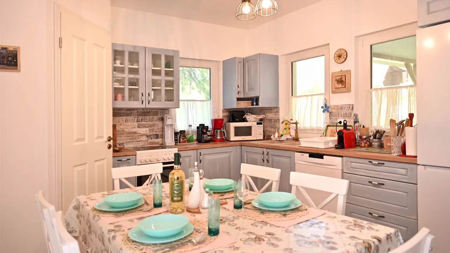 Ha főzéshez lenne kedvük, a kertben kerti tűzrakó és bográcsozó is megtalálható. A konyha pedig teljesen felszerelt, alapvető fűszerekkel, mosogatógéppel, sütővel és elektromos indukciós főzőlappal.