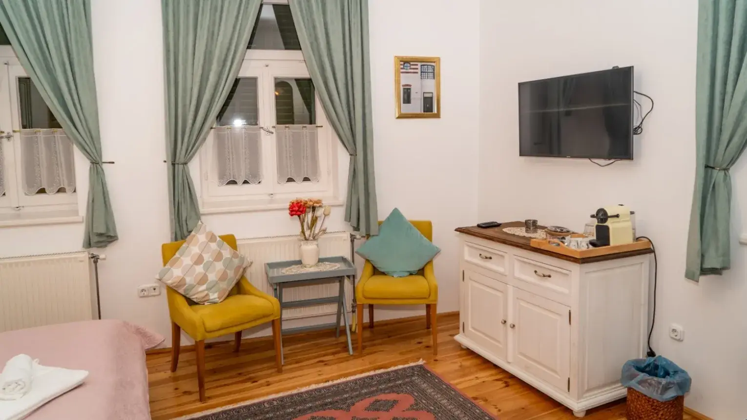 A hangulatos kis sváb parasztház két állandó, igényesen felújított és berendezett szobával várja a vidékre látogató vendégeket. Szobáink egyszerre testesítik meg a régi kor paraszti kultúrájának építészeti stílusjegyeit és a modern, letisztult, XXI. századi dizájnt. A környéken továbbá lehetőség van arra, hogy egy könnyed sétát vagy akár hosszabb túrát tegyenek a palkonyai természetben, vagy a pincesorokon megkóstolják a lokális borkínálatot. A közelben lévő wellnessekben (Harkányban és Siklóson) pedig kinyújtóztathatják fáradt végtagjainkat!