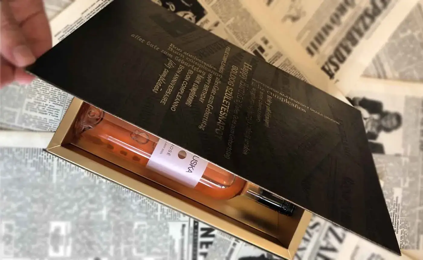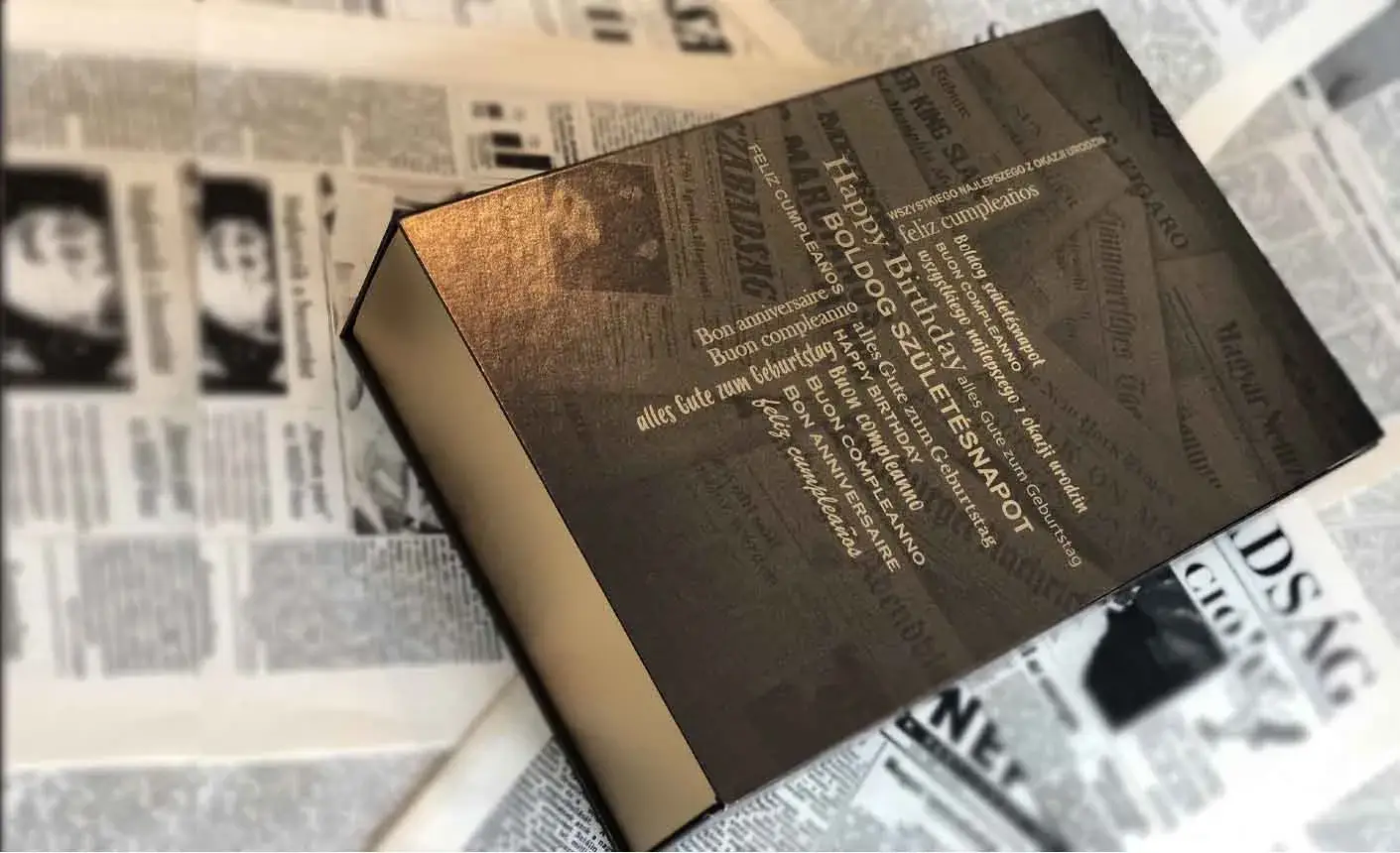 Legelegánsabb átadási forma amikor szép díszdobozban egy üveg finom itallal pillantja meg az ünnepelt ezt a személyes ajándékot, ami az Ő születésnapjáról szól. Az aznapi jelentős híreket, érdekességeket tartalmazza.