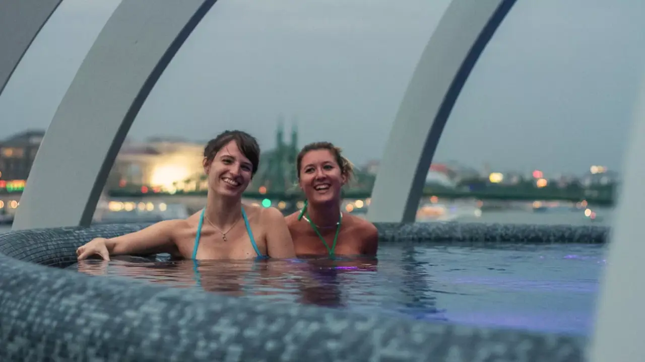 A Rudas Gyógyfürdő legújabb szárnyában a legmodernebb technikával, európai színvonalú, ugyanakkor a hely hagyományait maximálisan tiszteletben tartó fürdőélmény mellett, az emeleten nemzetközi-magyar fúziós konyhával, egy Aqua bárral, valamint a tetőn egy páratlan kilátást biztosító panoráma medencével várják a vendégeket. Hab a tortán, hogy éttermük termeiből (és egyébként a fürdő medencéiből is) olyan kilátás nyílik a Dunára és a városra, mely világviszonylatban is egyedülálló.