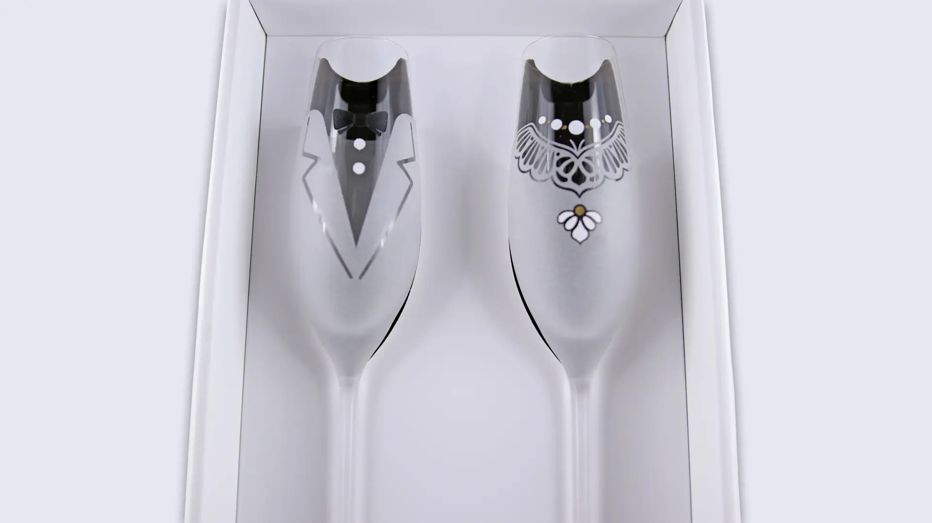 A design pezsgőspoharak magassága 26 cm. A képen látható díszdobozba csomagoljuk.