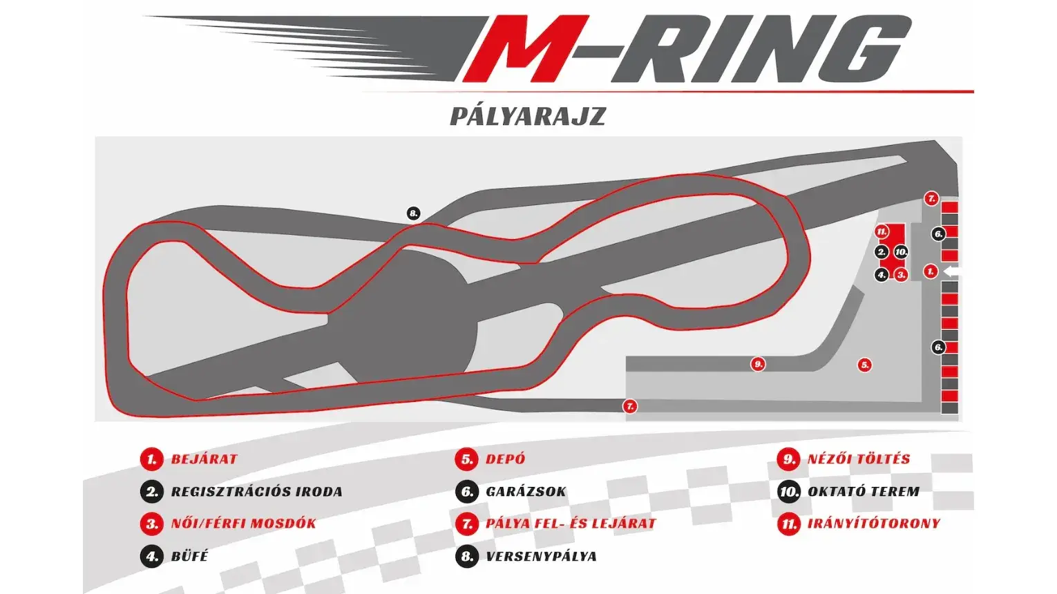 Emellett több, mint 5000 nm-es füvesített depó, 130 m hosszú nézői töltés, melyről a pálya teljes egésze belátható, és 360 nm-es kiszolgáló épület várja a látogatókat.