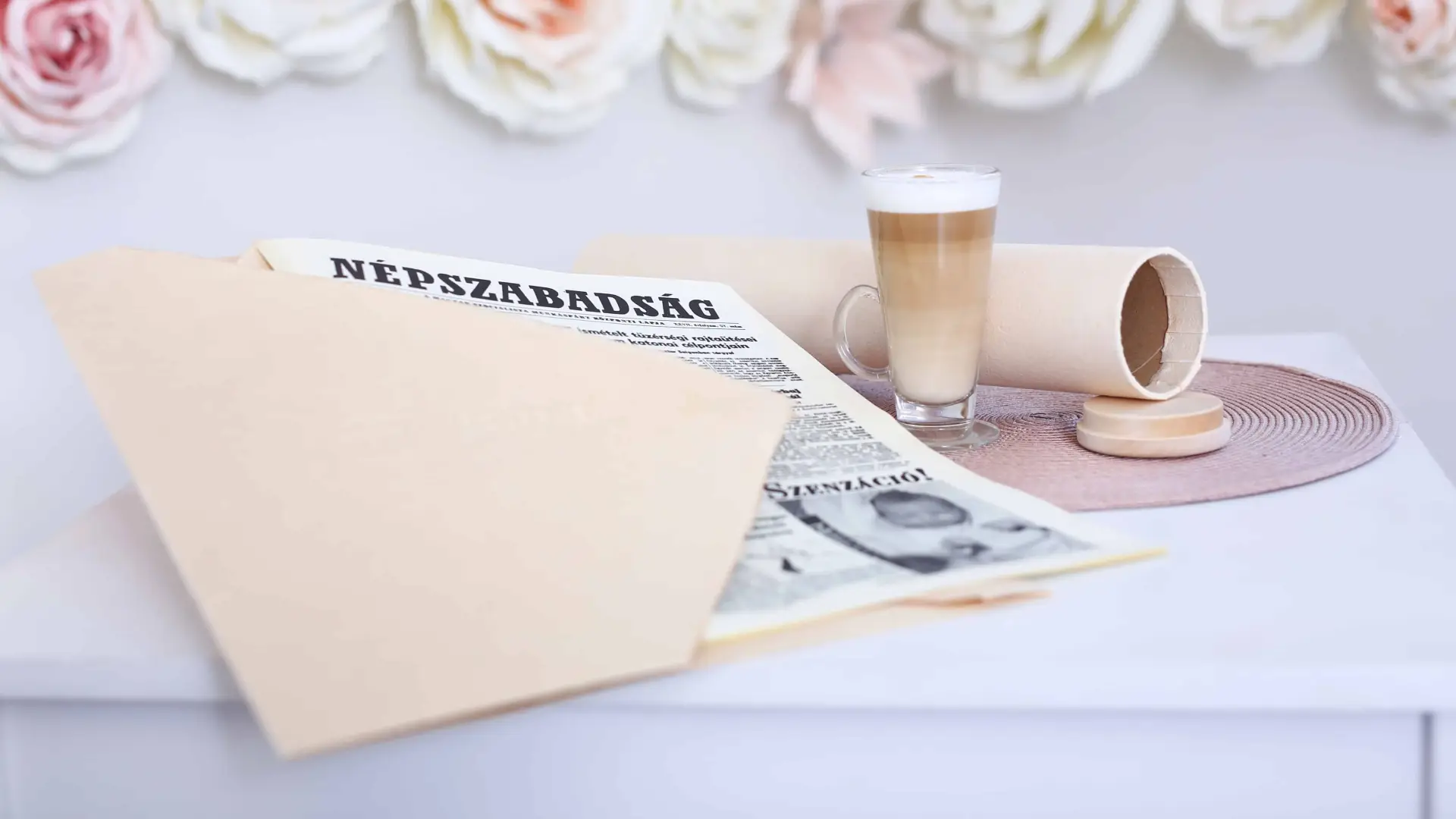 - vékony, sárgás újságpapírra nyomtatjuk, ami korabeli hangulatot kelt.
