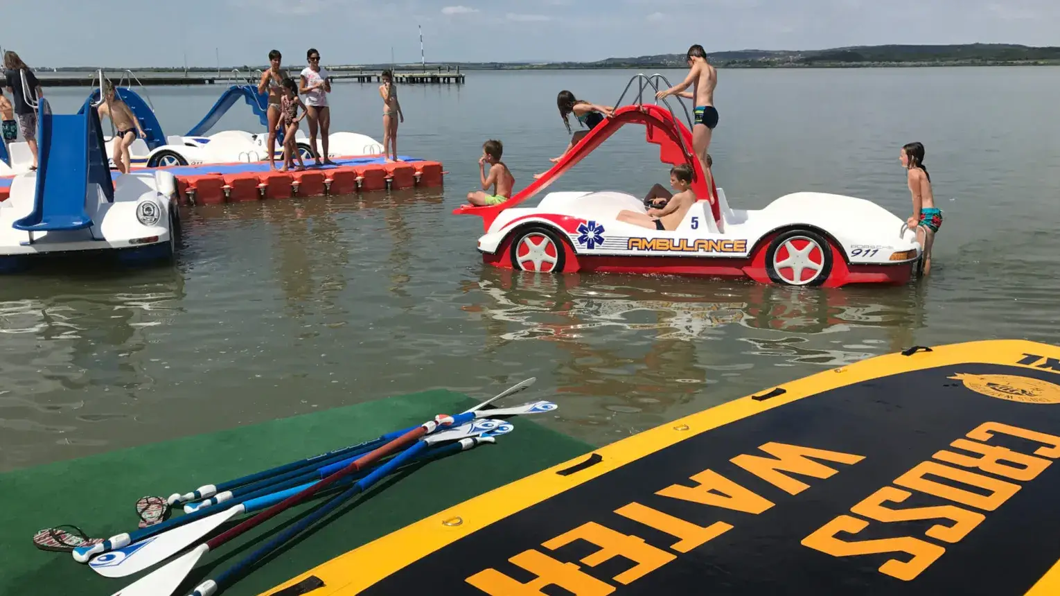 Ez az egyik legnépszerűbb vízi-eszköz a kánikulában, a vízibicikli. A perzselő melegben, vagy a tavaszias nyárban is jó választás mindenkinek, de főleg családoknak, barátoknak, pároknak a vízibicikli bérlés. Új, modern „járműveik” önfeledt élményt biztosítanak a vízparti zajos fürdőrésztől távol. Minden gyerek nagy kedvence a csúszda. Könnyen felfedezhető és „körbevezethető” a tó nagy része, de ha valaki a víz közepén szeretne napozni arra is tökéletesen alkalmas. Számos vízibicikli áll rendelkezésre a Crosswaternél.